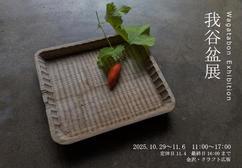いつしか忘れ去られていった我谷盆の復興を目指す森口信一氏が活動拠点として2016年に風谷アトリエを開設。以後多くの塾生が育ち、暮らしに寄り添う我谷盆を生み出しています。今回はその塾生11名による作品の展示・販売、この機会にぜひお楽しみください。