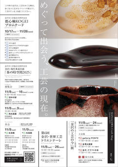 2F ギャラリーフロアタイトル:金沢・世界工芸トリエンナーレ特別展「金沢の工芸の今」展 作家名: 開催場所:2F 次回開催 開催期間:2025年11月8日(土)~11月24日(月祝) 開催時間:11:00~17:00 トリエンナーレに併せて入選者等の作品を展示。 ギャラリー利用案内