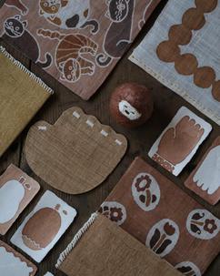 絵柄は私が今気になっているものやこと、生活している中で気に留まったものなどをモチーフに染めています。