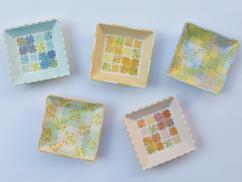 布の質感を取り入れたうつわを作っています。上絵付けを焼き重ねて生まれてくる色や模様の変化を楽しみながら制作をしています。明るくなれるものを作りたいと思っています。